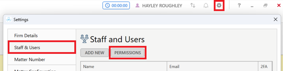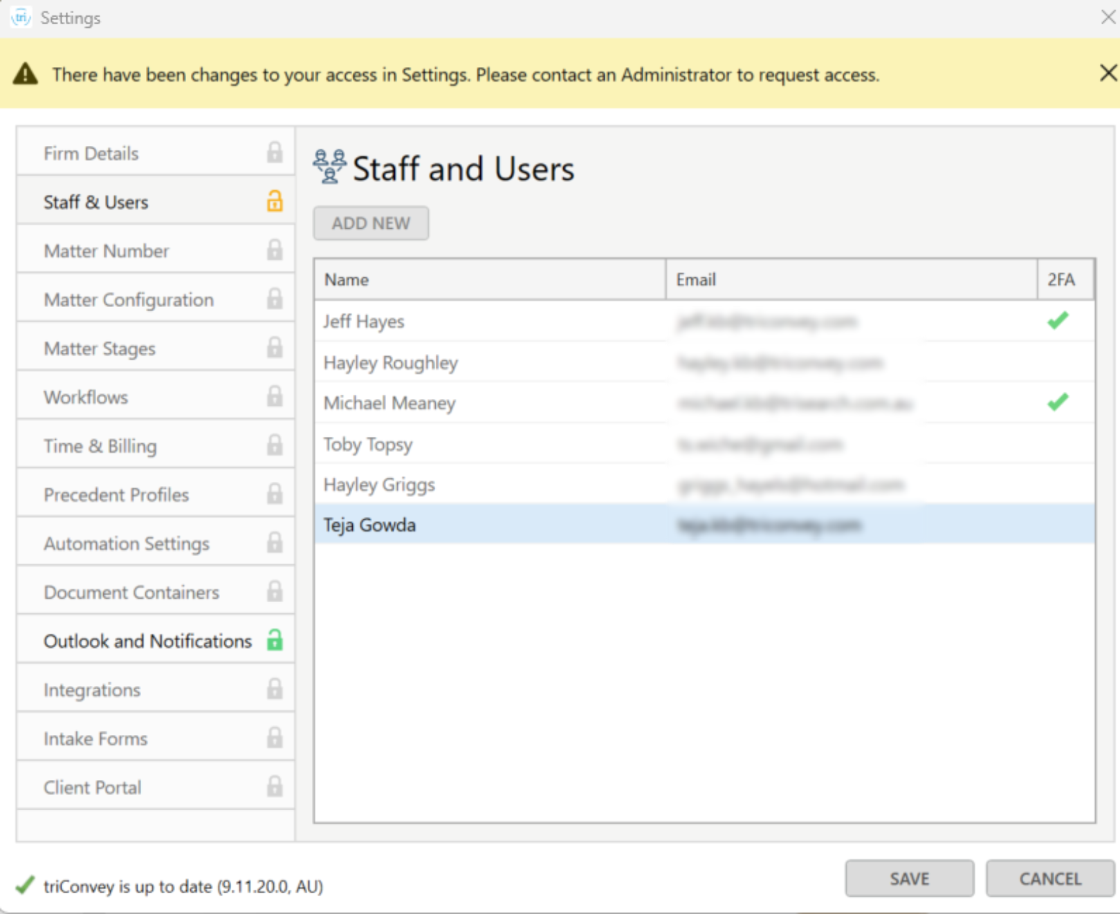 You can now restrict staff members from making changes in triConvey Settings that affect the whole firm. When this permission level is applied, the only areas the staff member can access in triConvey Settings are: