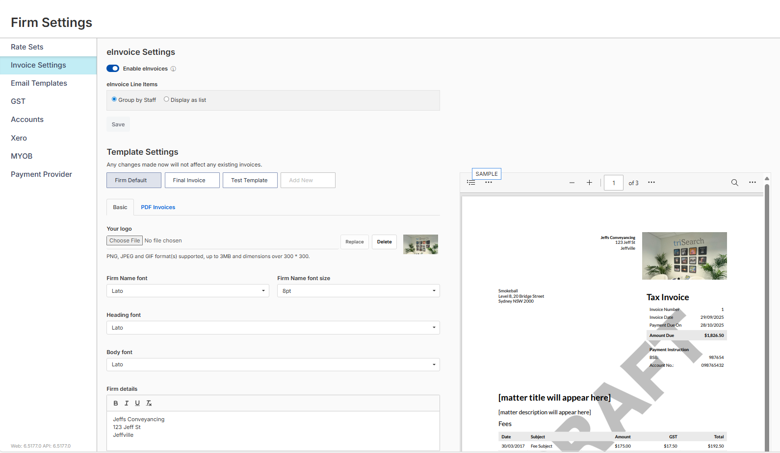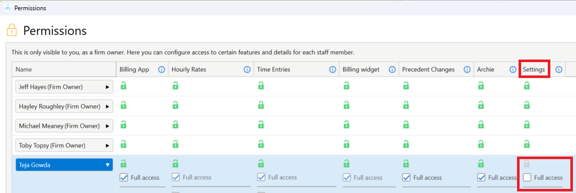 In addition, the staff member can only access billing-related settings in the Firm Settings of the triConvey Companion Site Web App: