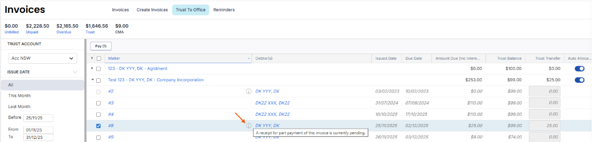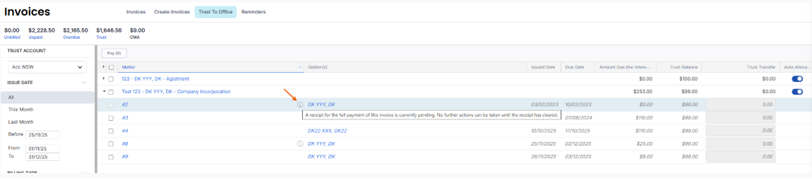 We have made some changes to the behaviour of pending payments/receipts to prevent overpayments from landing into the trust account.