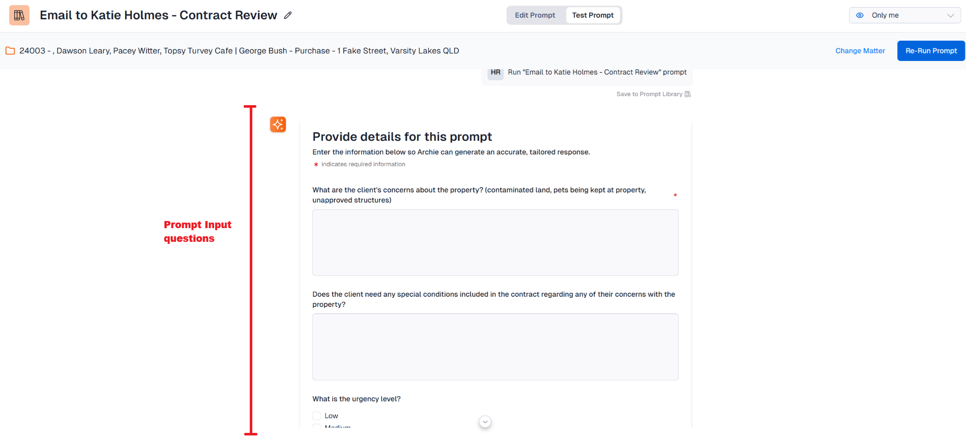 You can now make Archie collect information that is not stored in a matter by creating Prompt Inputs. Prompt Inputs are run before the prompt itself and give Archie more context to generate a better answer.