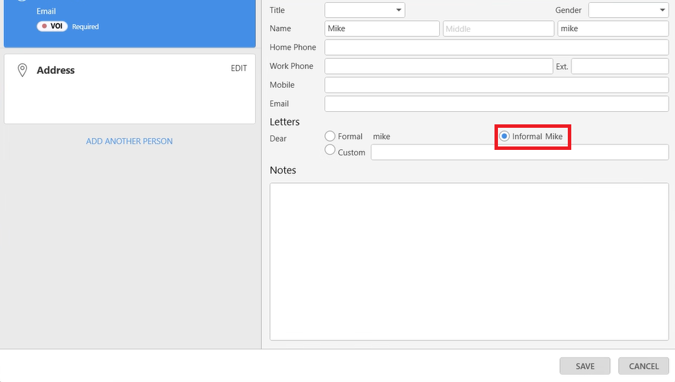 When creating a contact in a Lead, the Letter setting in their contact card will now default to Informal. This change makes it consistent with the behavior when creating a contact in a Matter.