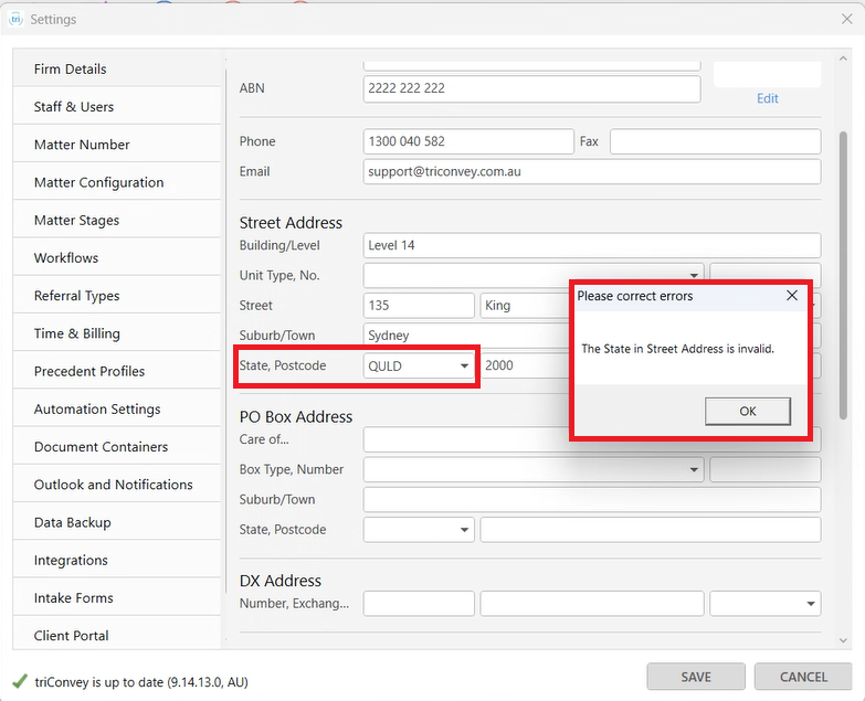 In triConvey Settings > Firm Details, we fixed an issue where the field in the State drop-down menu was editable, which was causing issues with reporting.