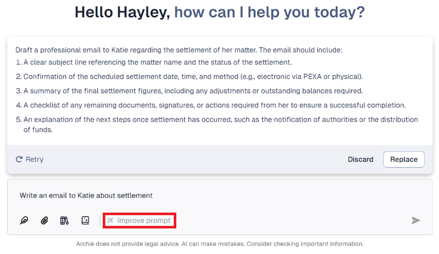 This allows you to get better outputs from Archie without needing to learn prompt engineering or start over from scratch.