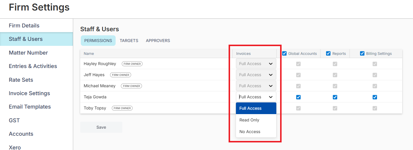 You can now set individual staff permissions on accessing invoices.