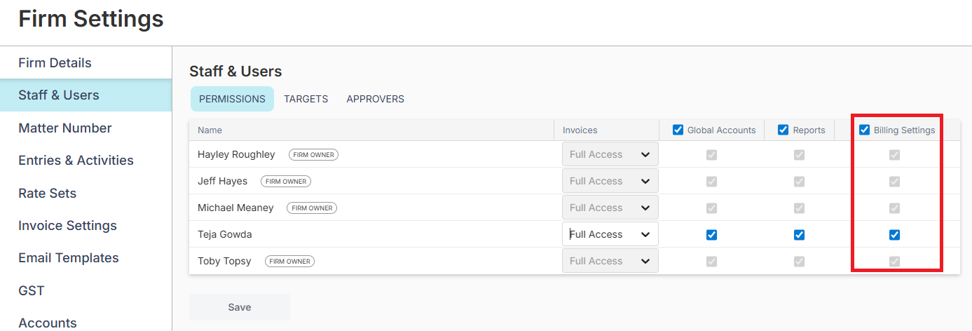 Firm Settings Permissions