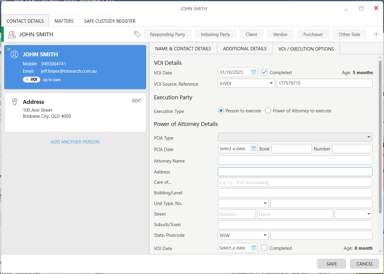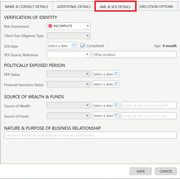 The VOI/Execution Options tab on contact cards has been reworked into the AML & VOI Details and the Execution Options tabs.