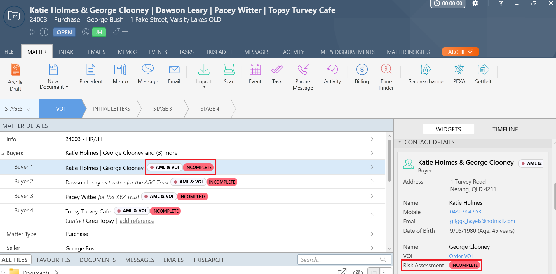 The VOI status pill is now shown on all matter types, and has been renamed to AML & VOI. The Risk Assessment status is displayed next to the AML & VOI pill.