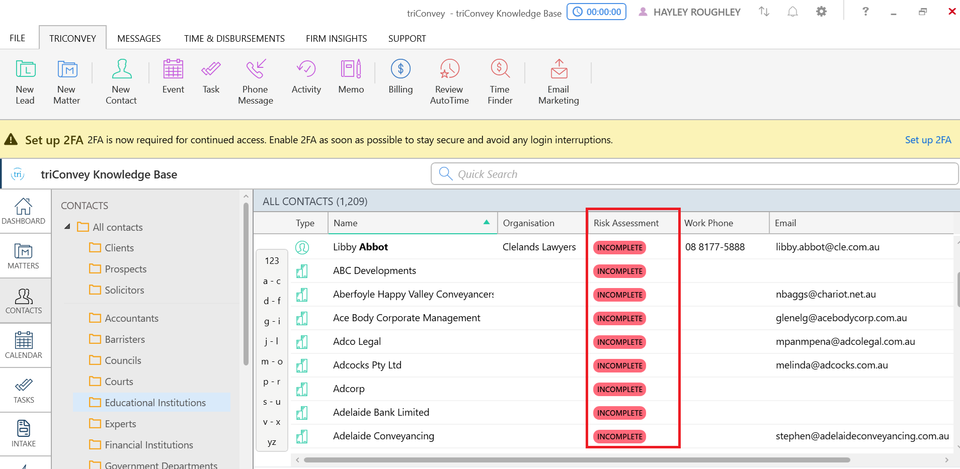 The Risk Assessment column has been added as an optional column you can include in your Contacts View.