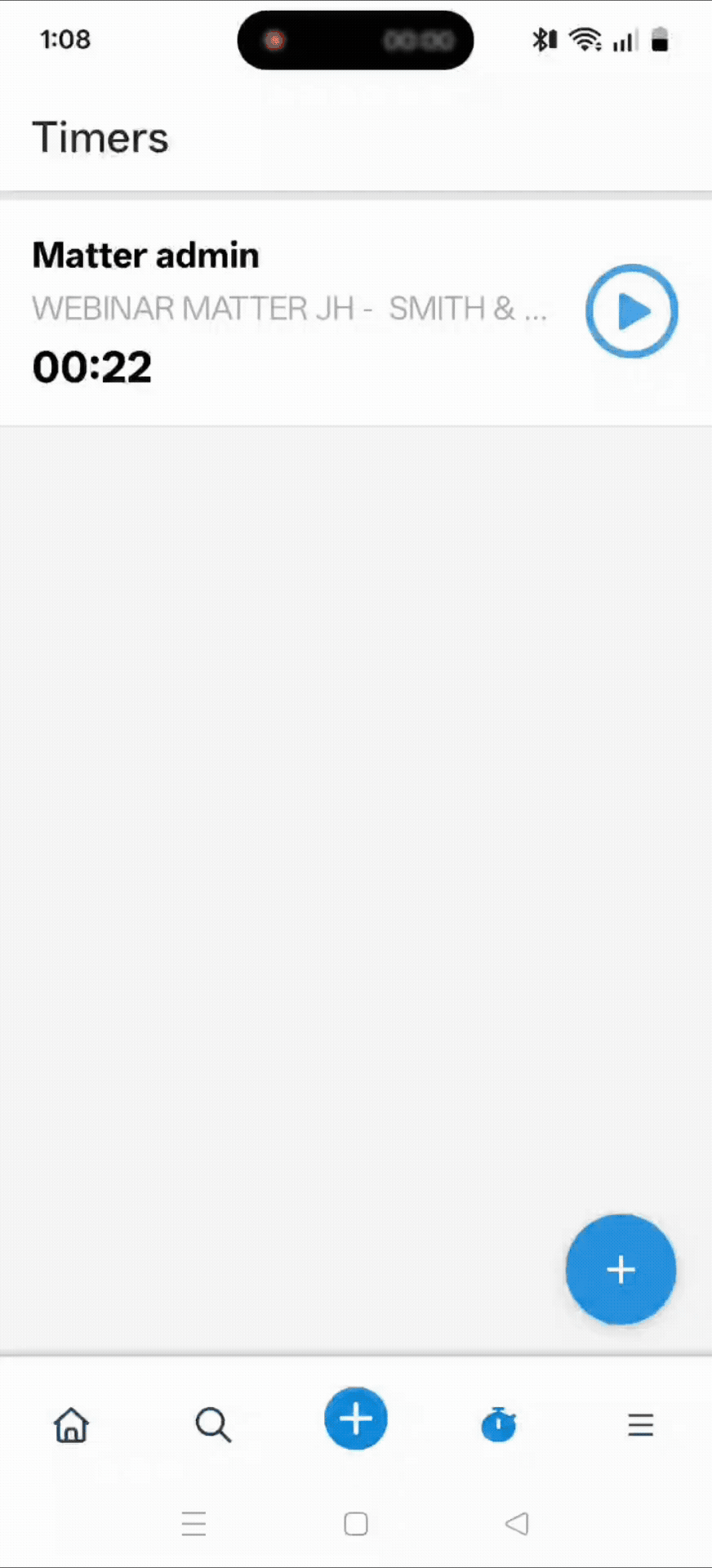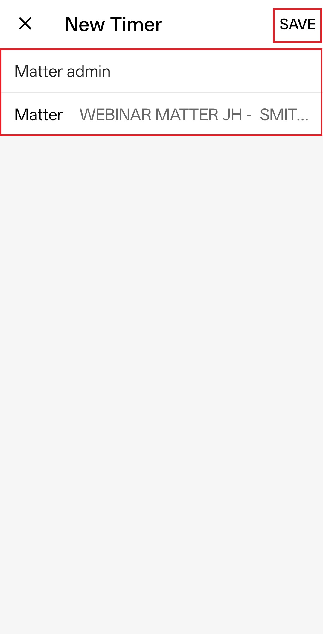 2. Enter the subject of the time entry and tap to choose the matter. Once you are ready to start the timer, tap Save.