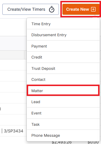 - select Create New from the top-right corner and then select Matter.