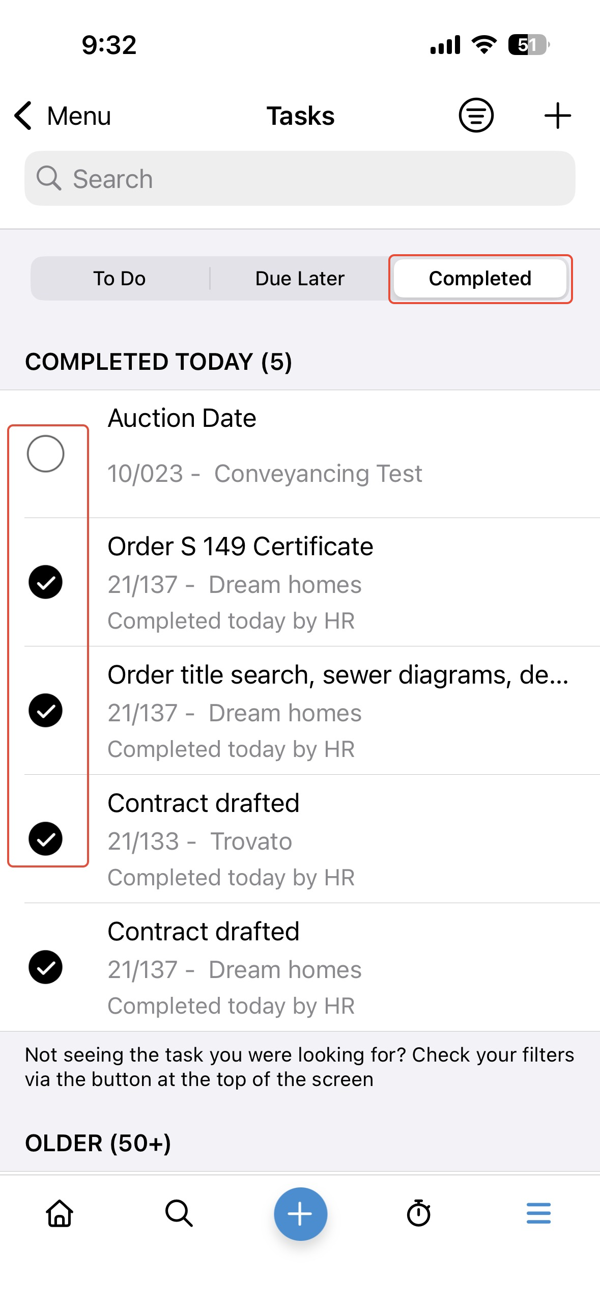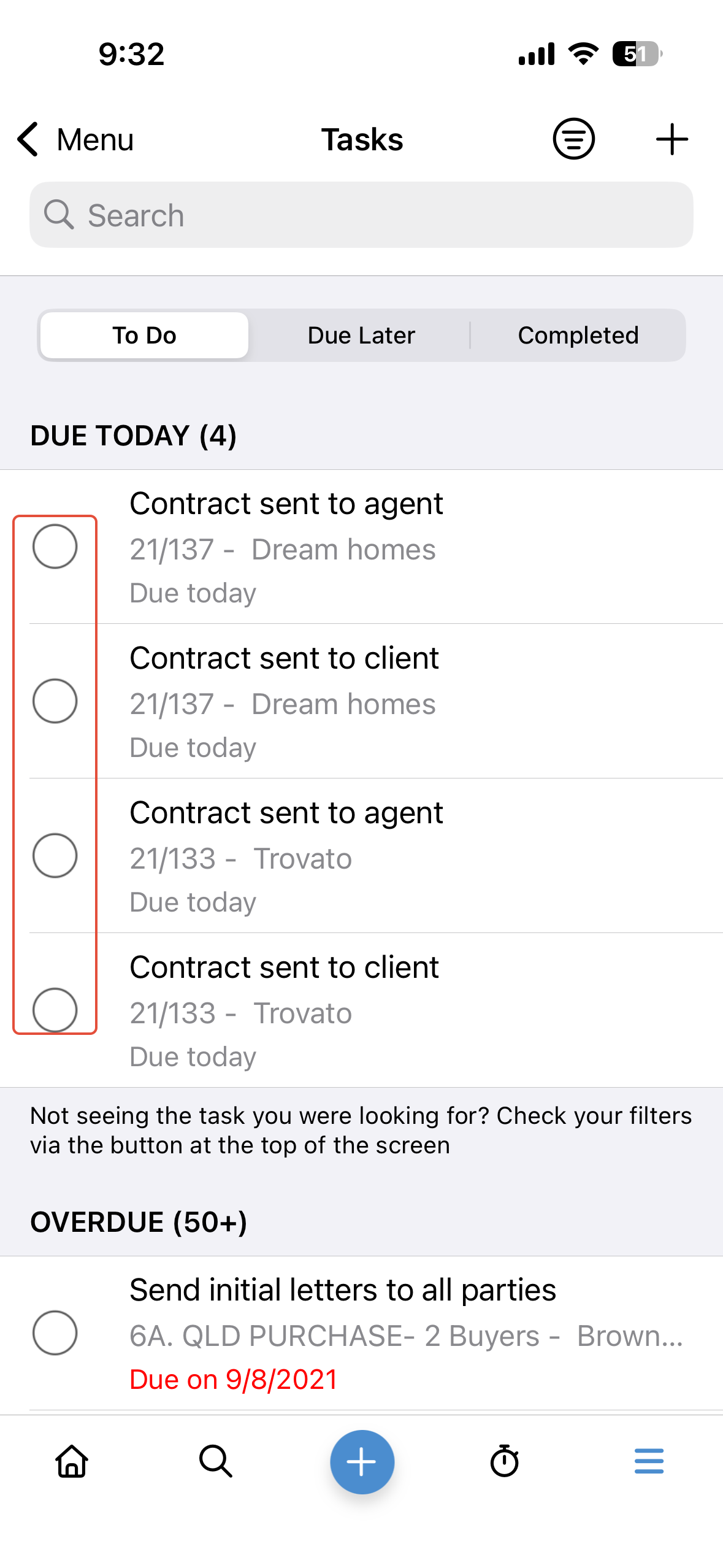 3. Find the task and tap the ticked circle to send it back to the To Do or Due Later tab.