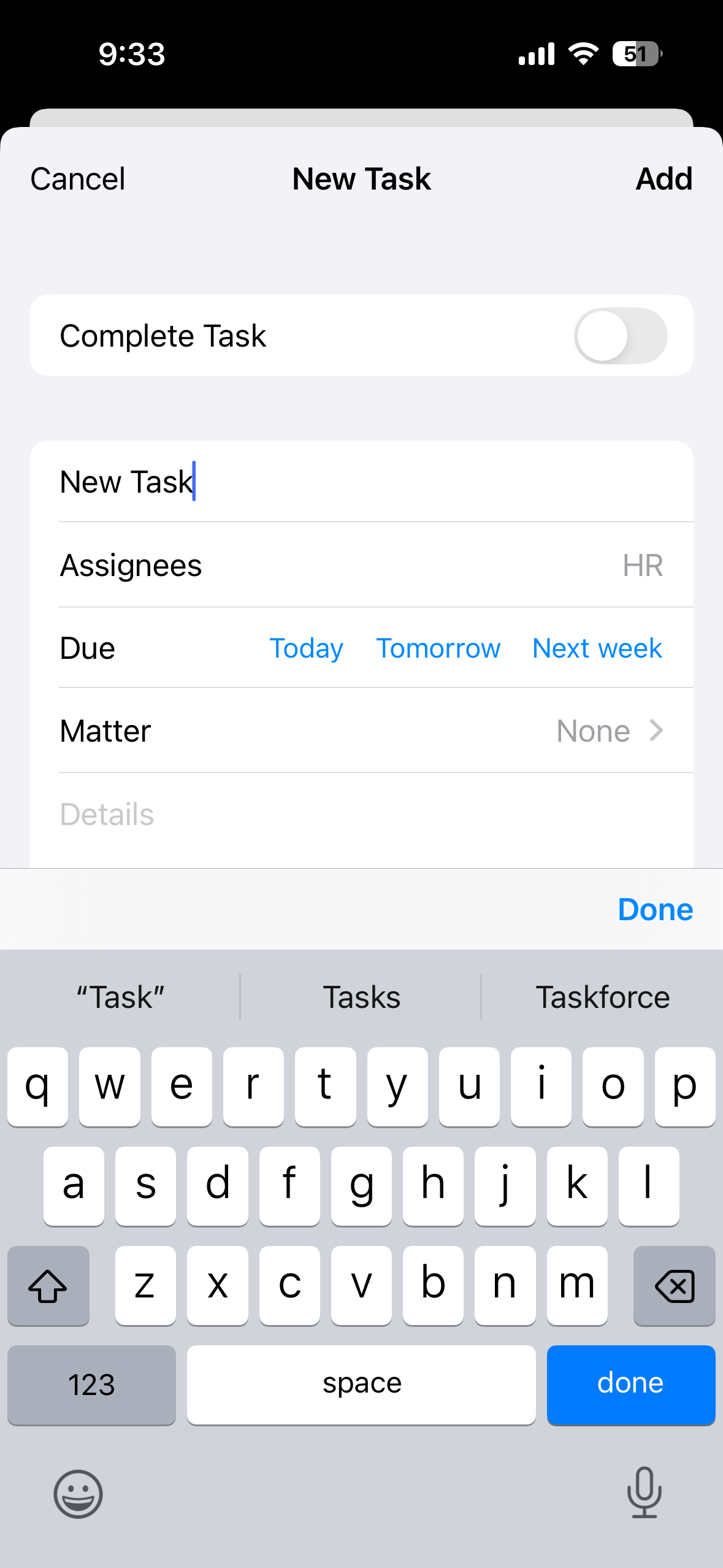 2. Ensure the task has a name at the minimum, before tapping Done.