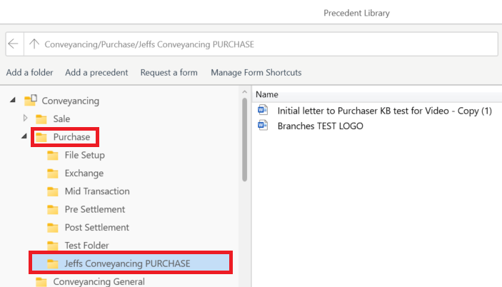This method works well when you would like to store all your precedents in the one location and create your own folder structure.