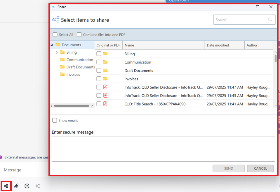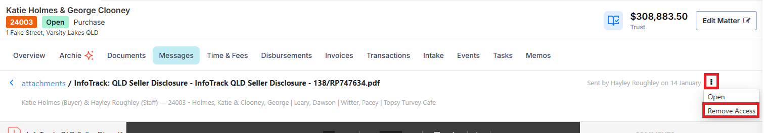 - Documents and folders shared between parties on the Client Portal can be viewed from the Messages section in the matter’s File viewer in the triConvey Desktop App.