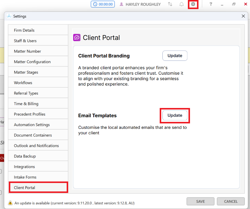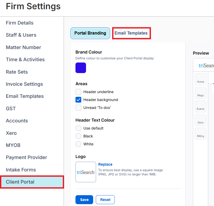 To customise Client Portal emails, access the Client Portal Email Template Settings.