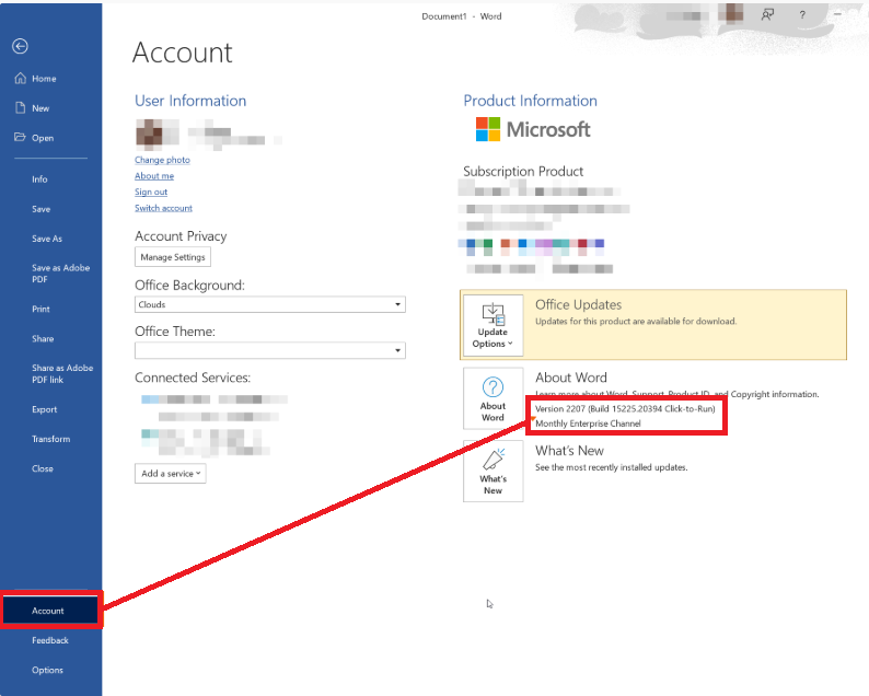 3. Select Account (or Office Account) from the bottom of the left panel.