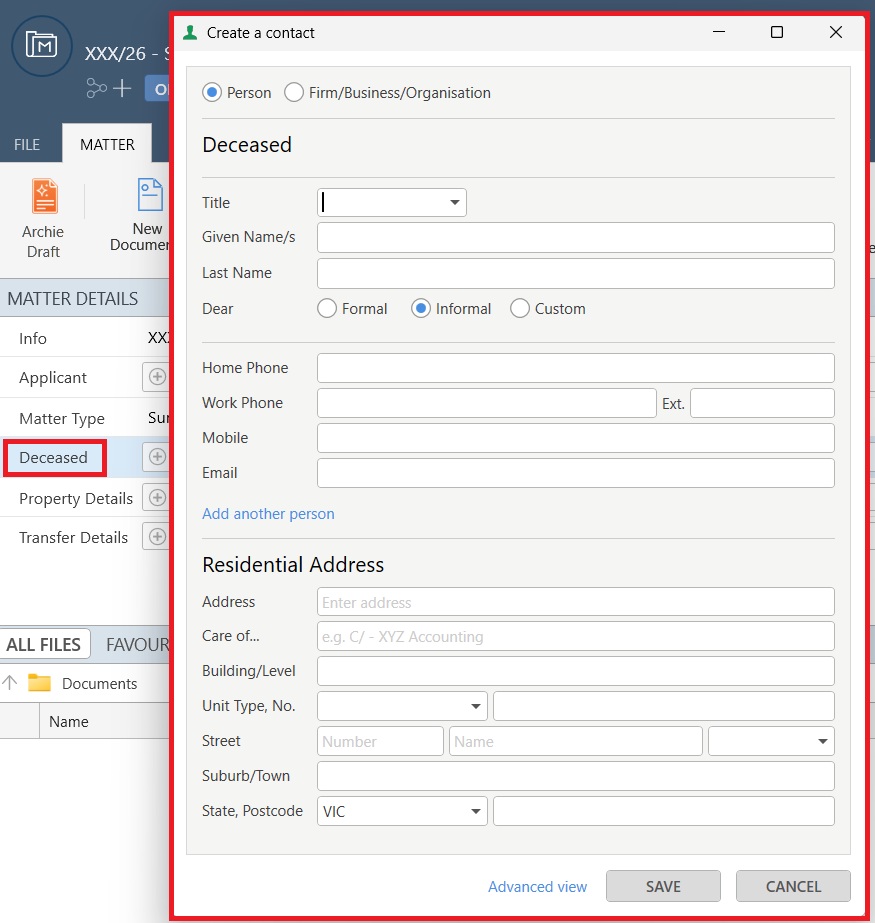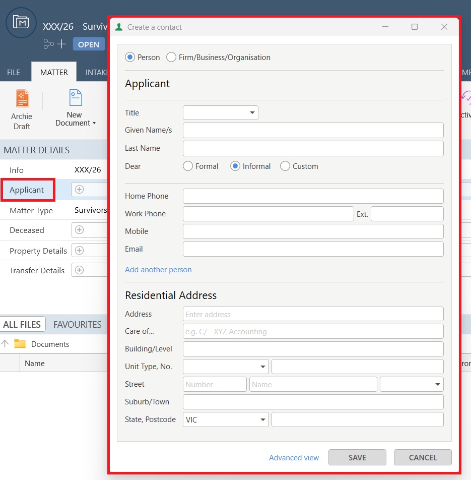 Tip: Not all details need to be entered immediately. However, it is best practice to enter as much information as possible to save yourself time when generating documents.2. Double-click Applicant and complete required contact details.