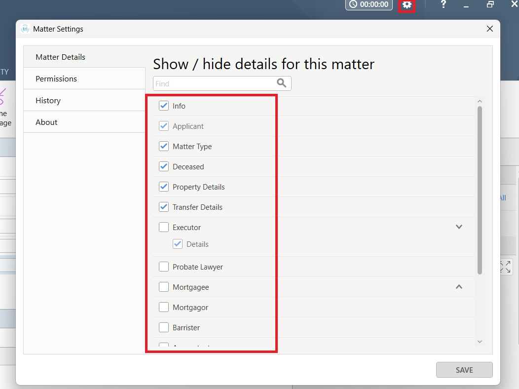 7. From Show/hide details for this matter, select the additional contact/s to be displayed in Matter Details.