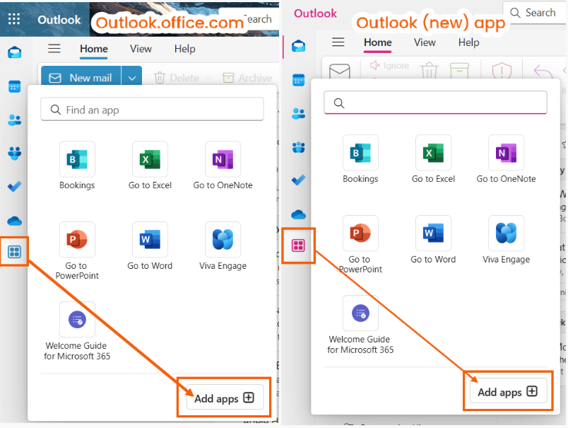 2.    Select the Apps icon on the left panel and then select Add apps.