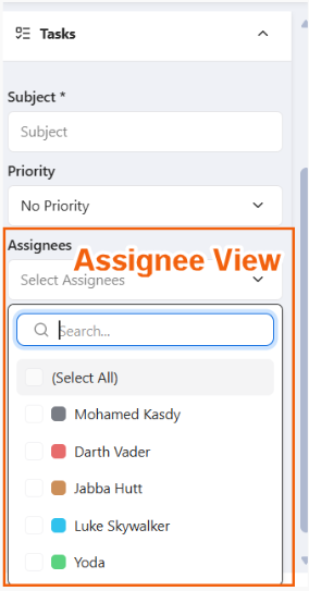 • In the Assignee view, clicking anywhere within the add-in will close it as expected. However, if the Assignee view is open and the user clicks outside the add-in (anywhere else on the screen), it will not close.