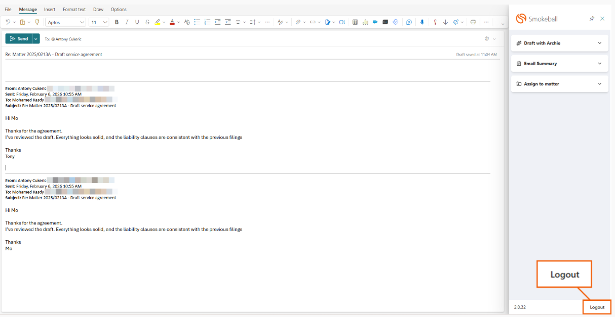 If you wish to revert back to using the Classic Outlook integration, you can do so at any time by clicking Logout on the bottom corner of the New Outlook toolbar.