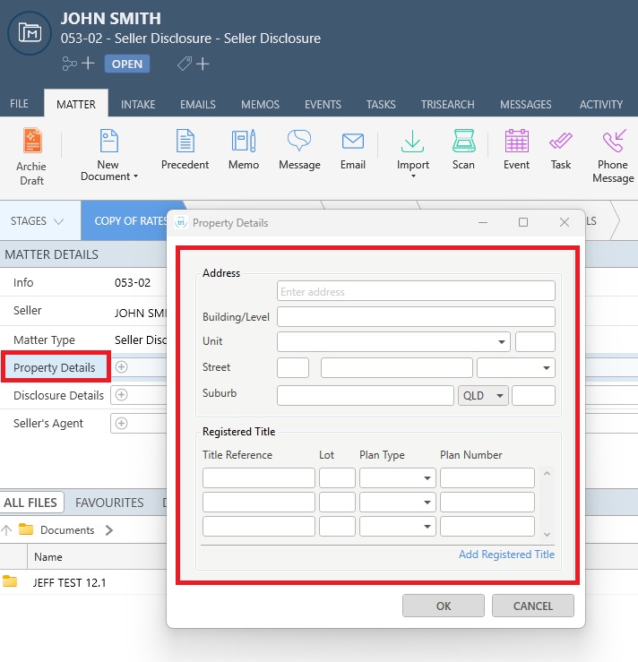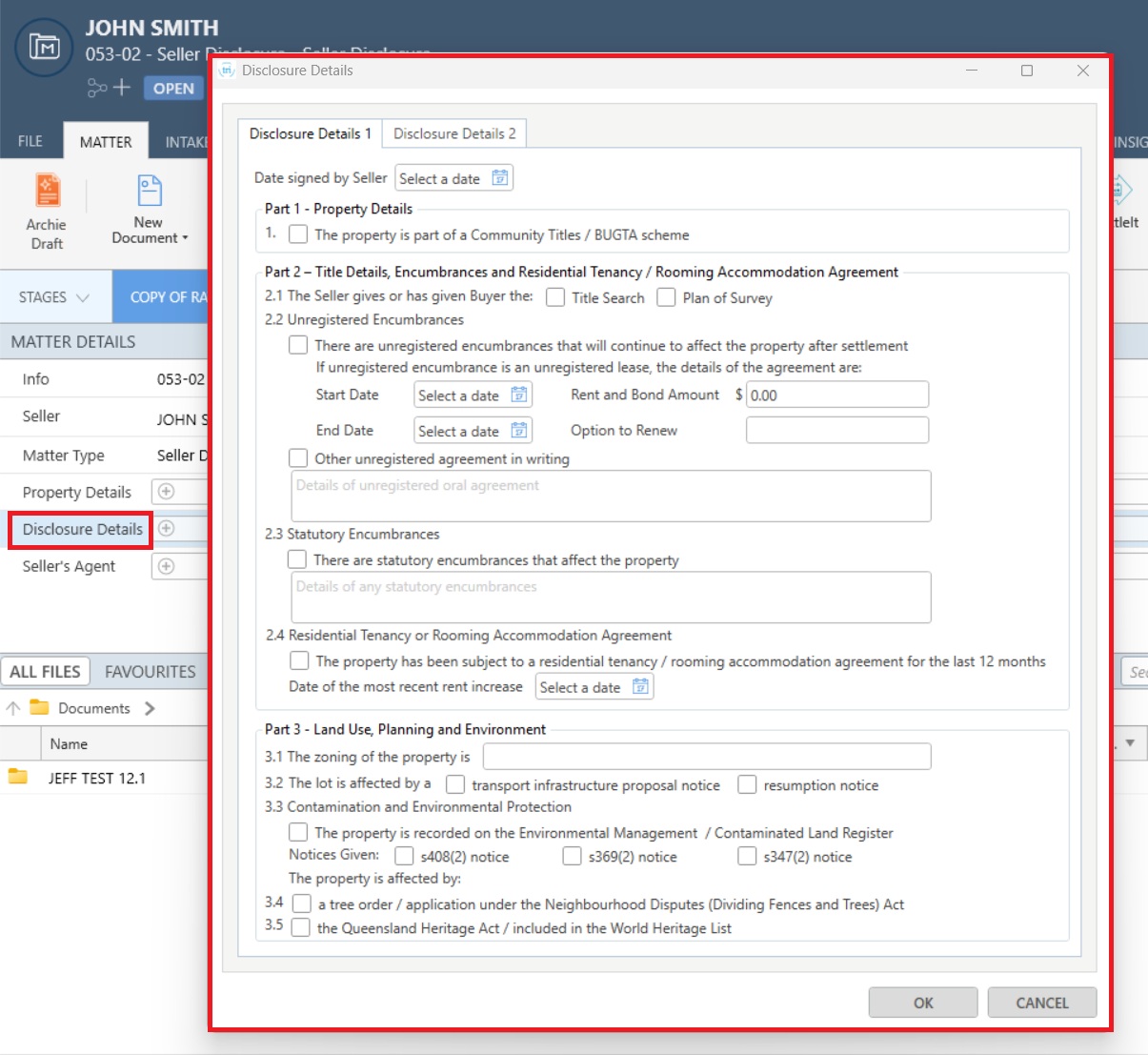 Create a QLD Seller Disclosure matter