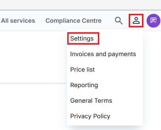 1. Select the settings icon from the top right corner.